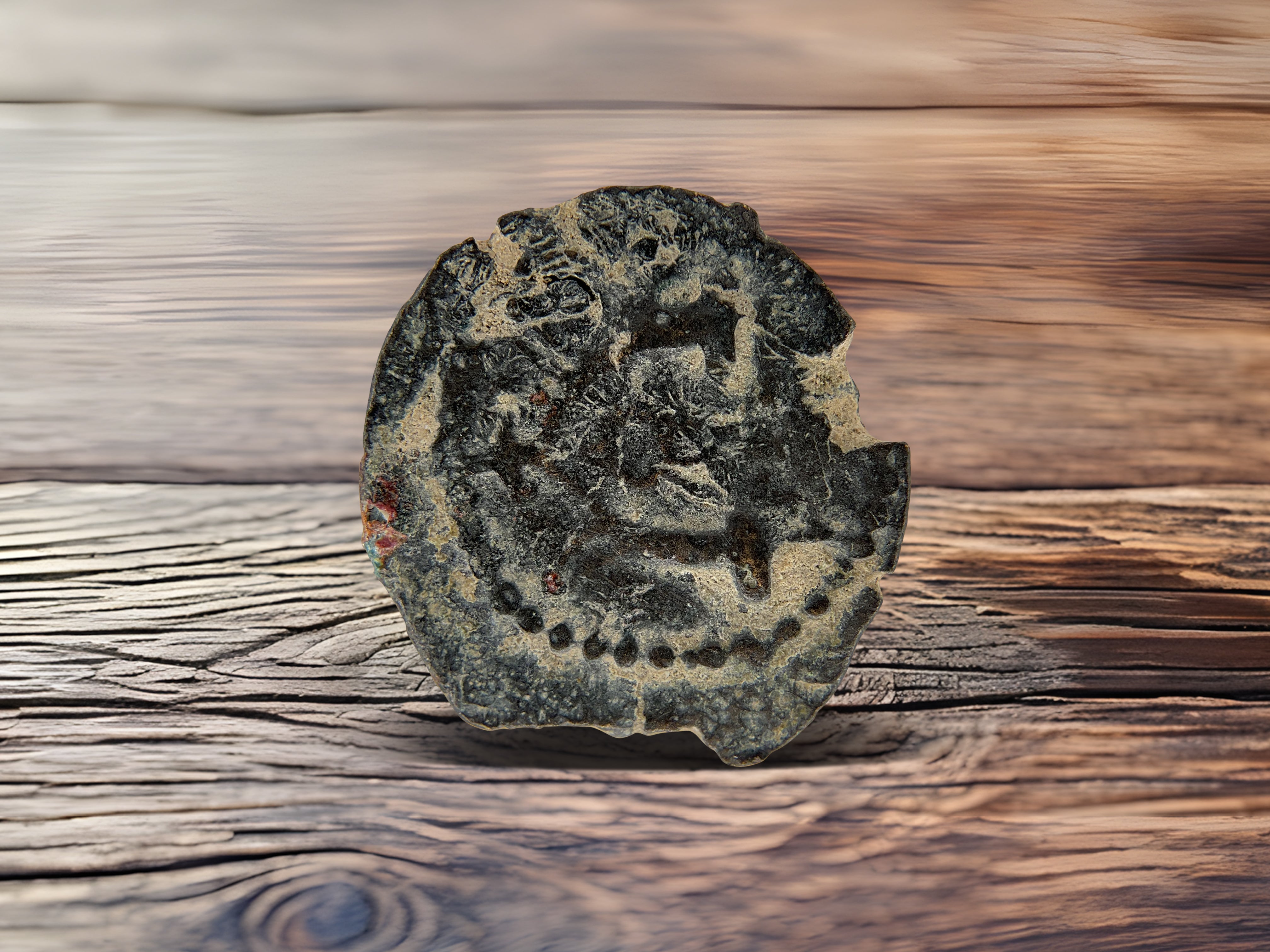 Reverse: Three heads of barley issuing from between two leaves on one side with the inscription, LϚ (Year 6 - 41/2 CE)