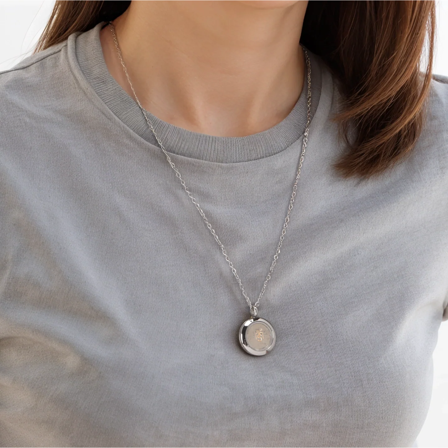 The pendant and locket are crafted from quality stainless steel, offering durability and a polished appearance.